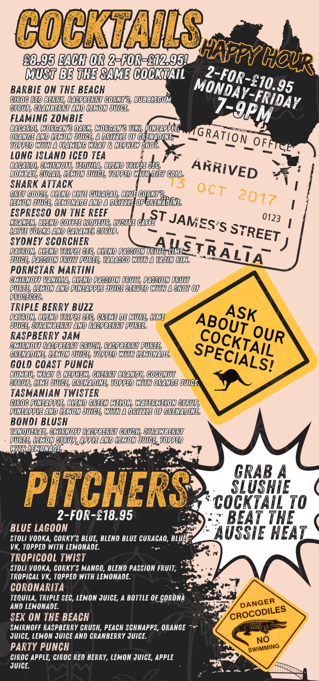 At OZ BAR, great drinks come with even better deals! With unbeatable offers running throughout the week, there’s always a reason to raise a glass. Whether it’s discounted beers during the game, happy hour cocktails, or special promotions on your favourite spirits, our deals ensure you can enjoy more for less.